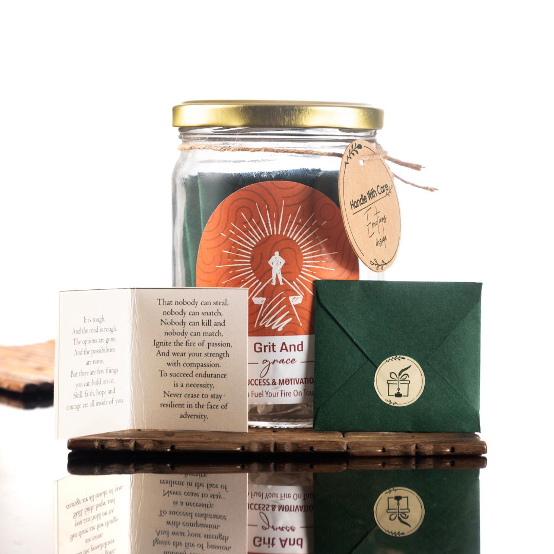 Some days feel heavier than others. When you’re chasing a goal, doubting yourself, or pushing through one of those “Why am I doing this?” moments, this jar is here to keep you going. It offers reminders that even the strongest people need support, and that every step forward, no matter how small, matters. Packed with words of resilience and inner strength, it’s a reminder to rise, and keep going. It is also a perfect good luck charm for anyone who needs it on their journey to start something new.